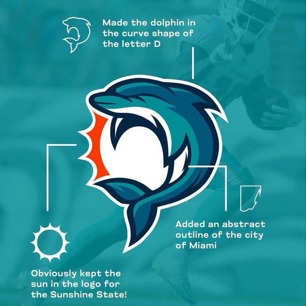 Another design that thoroughly captivates me is her innovative reinterpretation of the Miami Dolphins' logo. Through this engaging endeavor of reimagining NFL team logos, she masterfully encapsulates not only the spirit of Miami but also the streamlined elegance and vibrant energy associated with dolphins.